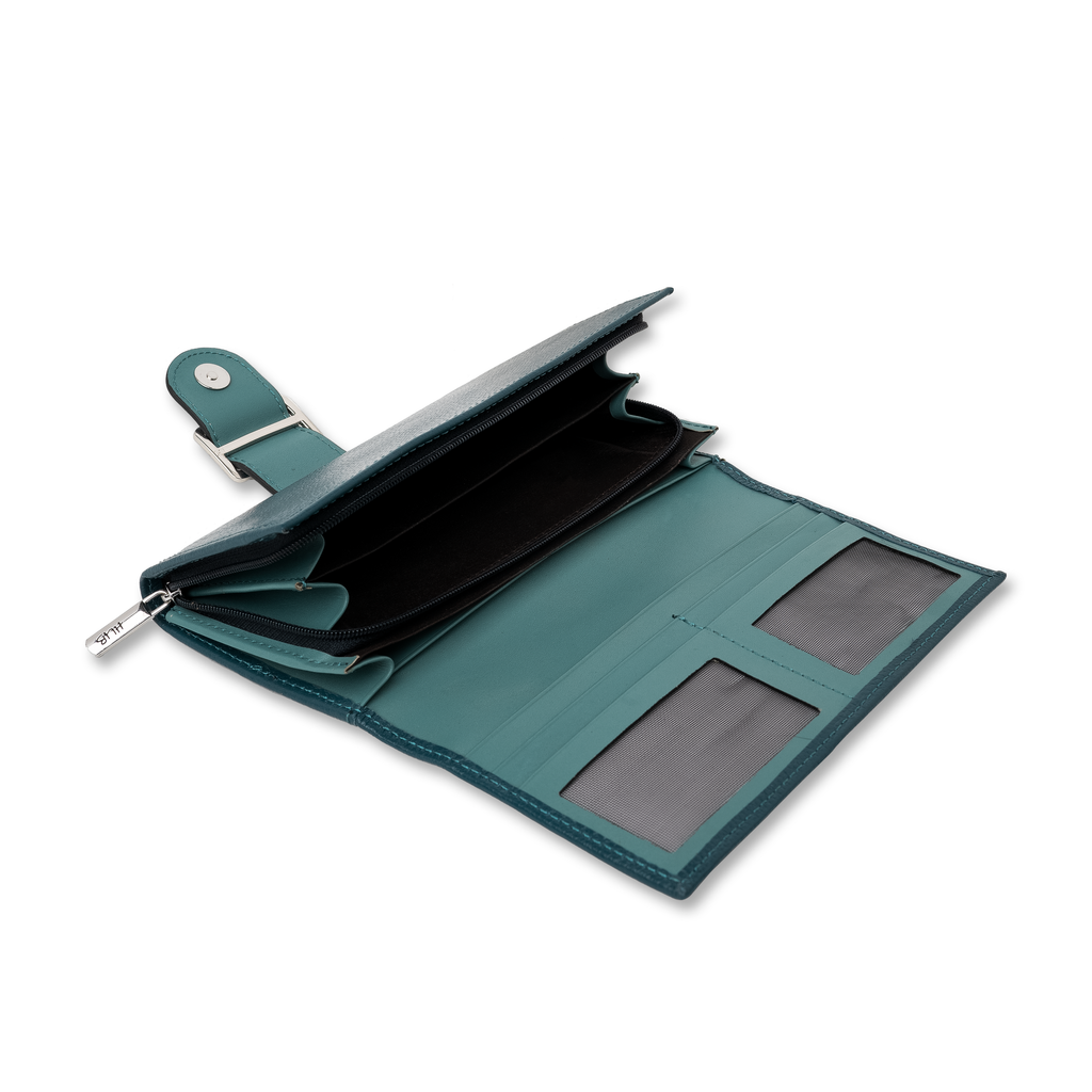 Introducing an extensive clutch crafted with finesse and beauty, designed to be both an elegant accessory and a practical companion. Its secure snap closure ensures peace of mind, while the rich, textured leather adds a luxurious feel that’s both inviting and stylish.