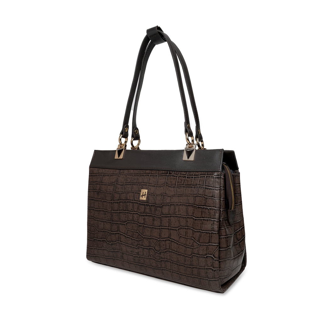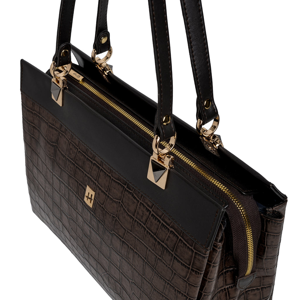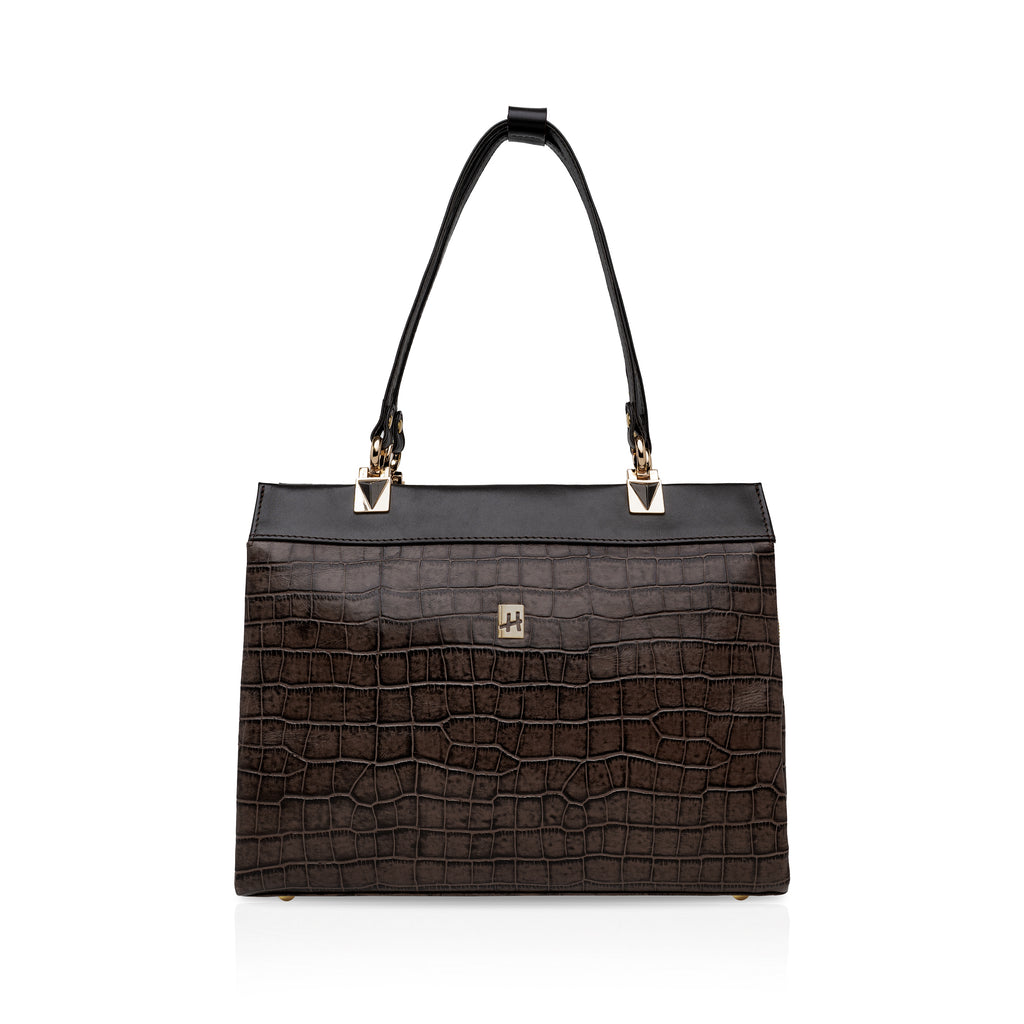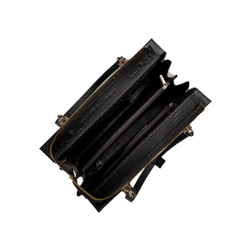 This elegant handbag is the ideal accessory for a casual ensemble, boasting a timeless silhouette and a sophisticated minimalist design. Adorned with gleaming hardware, the handbag exudes a touch of luxury. It ensures both durability and a refined look. The secure zipper opening leads to a spacious main compartment, thoughtfully divided into three sections, featuring one large zipper pocket and one smaller zipper pocket, alongside two additional pockets for your accessories, providing ample organization for your essentials. Plus, an exterior zip pocket offers quick access to items you need on the go, making this handbag as practical as it is stylish.