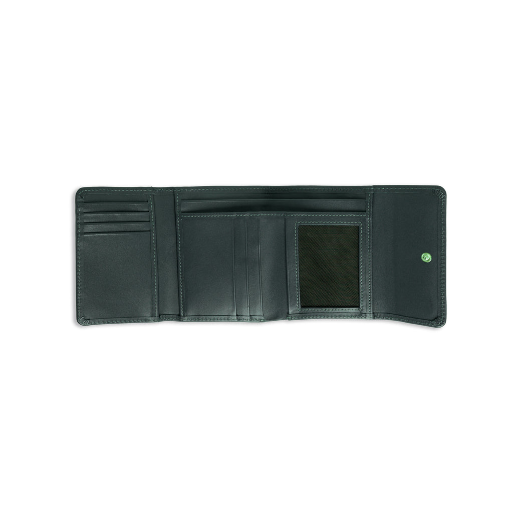 The secure button closure ensures that all your cards and cash remain in place throughout the day, giving you peace of mind without sacrificing elegance.
