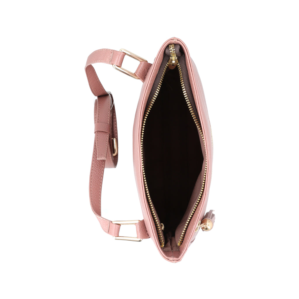 Trendy cross body bag design in a fashionable design with golden details and stylishly made leather-tassel front zipper. An ideal option to accessorize with a chic outdoor or smart casual look.