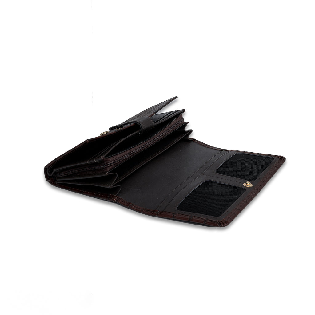 With its distinct textured exterior and practical interior, this wallet is the ultimate go-to option for any occasion. Crafted from premium leather, it features a secure buttoned opening and ample storage without compromising style and functionality for your everyday needs. Equipped with ten card slots and two dedicated ID slots, it offers plenty of space to keep your essentials organized. The spacious money slot and additional zipper compartments ensure your cash and coins are safely stored, making it a perfect blend of elegance and convenience designed for the modern lifestyle! Dimensions in MM: Height x Width x Depth 3.7" x 7.4" x 2.5"