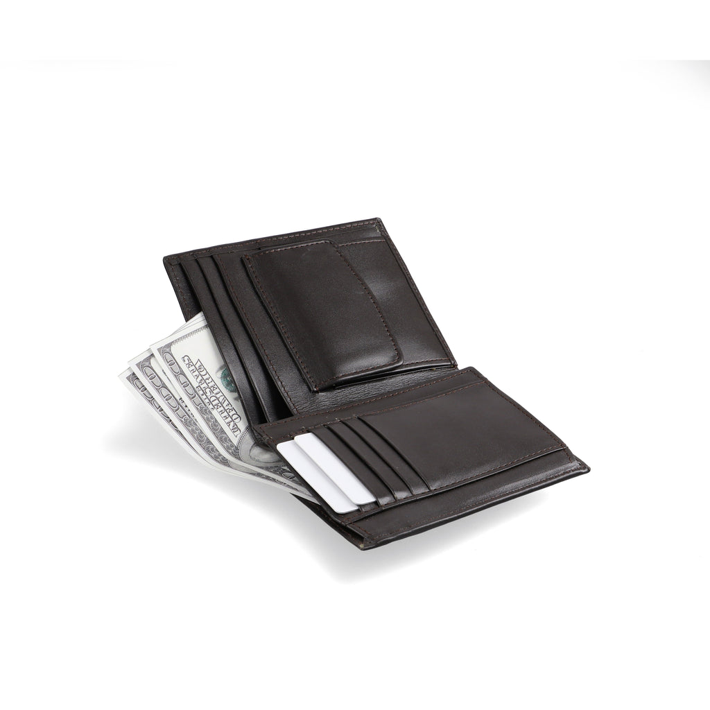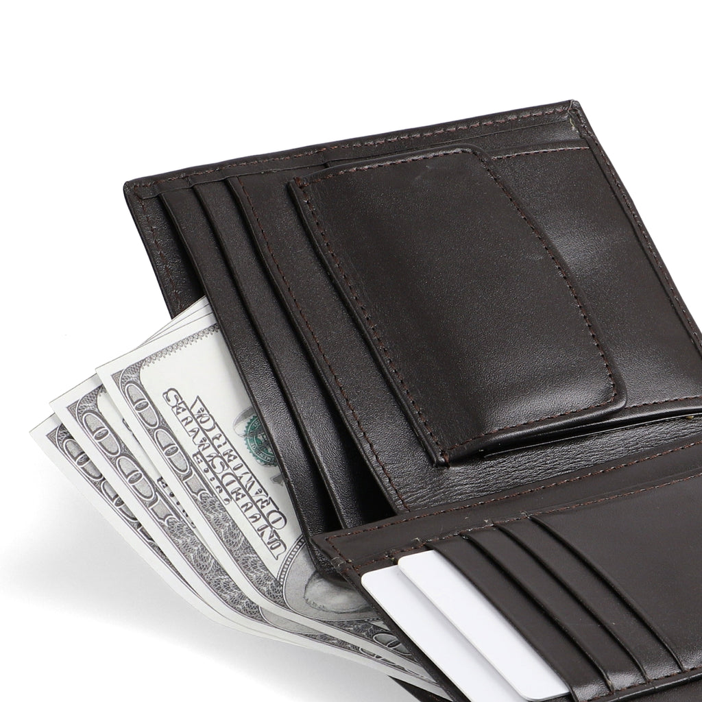 This classic tri-fold wallet is designed for those who value both style and practicality. With extra pockets and flaps, it enhances functionality, ensuring you have a place for everything. It features one coin pocket, six multi-functional card pockets, and two ID windows for easy access. Additionally, there are three compartments for notes, allowing you to stay organized while on the go. Crafted for durability, this wallet is ideal for anyone looking to combine elegance with everyday convenience.